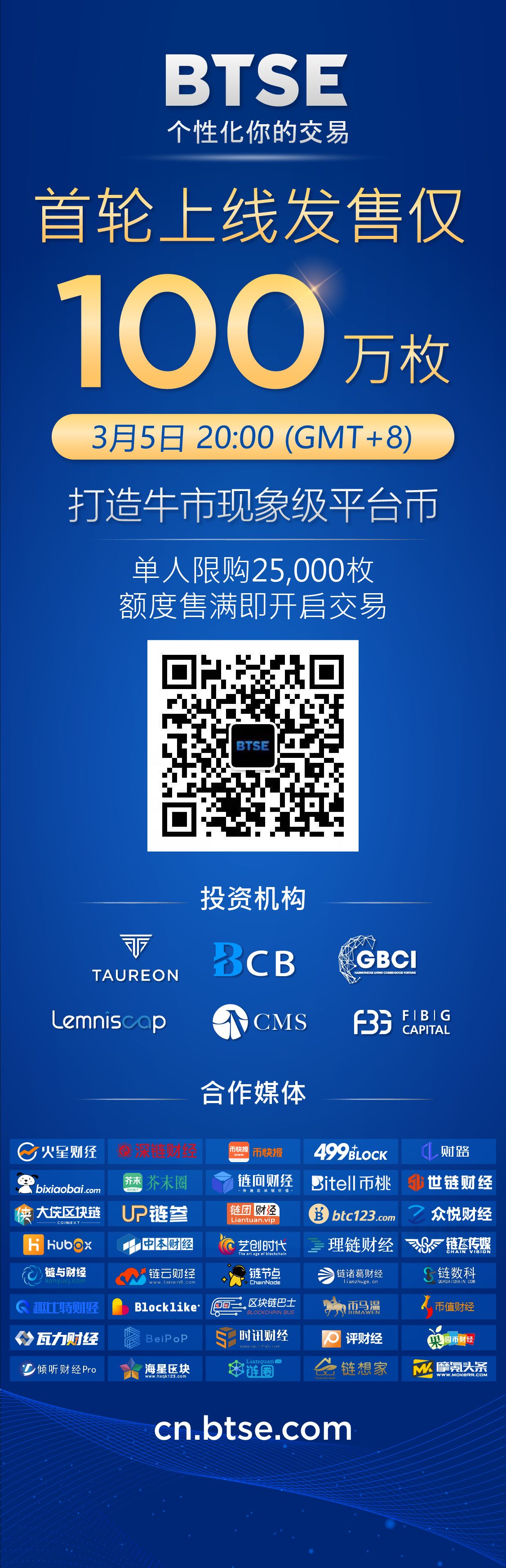 BTSE Token的初始发行价格为2美元/枚,代币销售期间将释出一百万个代币,每个用户均可抢购。BTSE也计划在平台币公开发售完成后两个小时后在交易所上线。BTSE Token能否获得市场青睐,能否像国内一线交易所的平台币一样实现价值增长,让我们拭目以待吧!