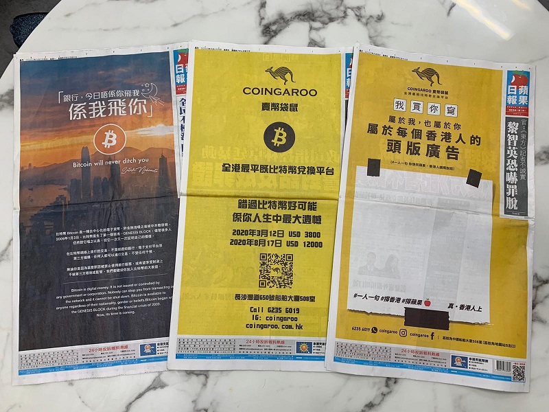 十天内连续出现了3次有关比特币或相关公司的全头版广告。